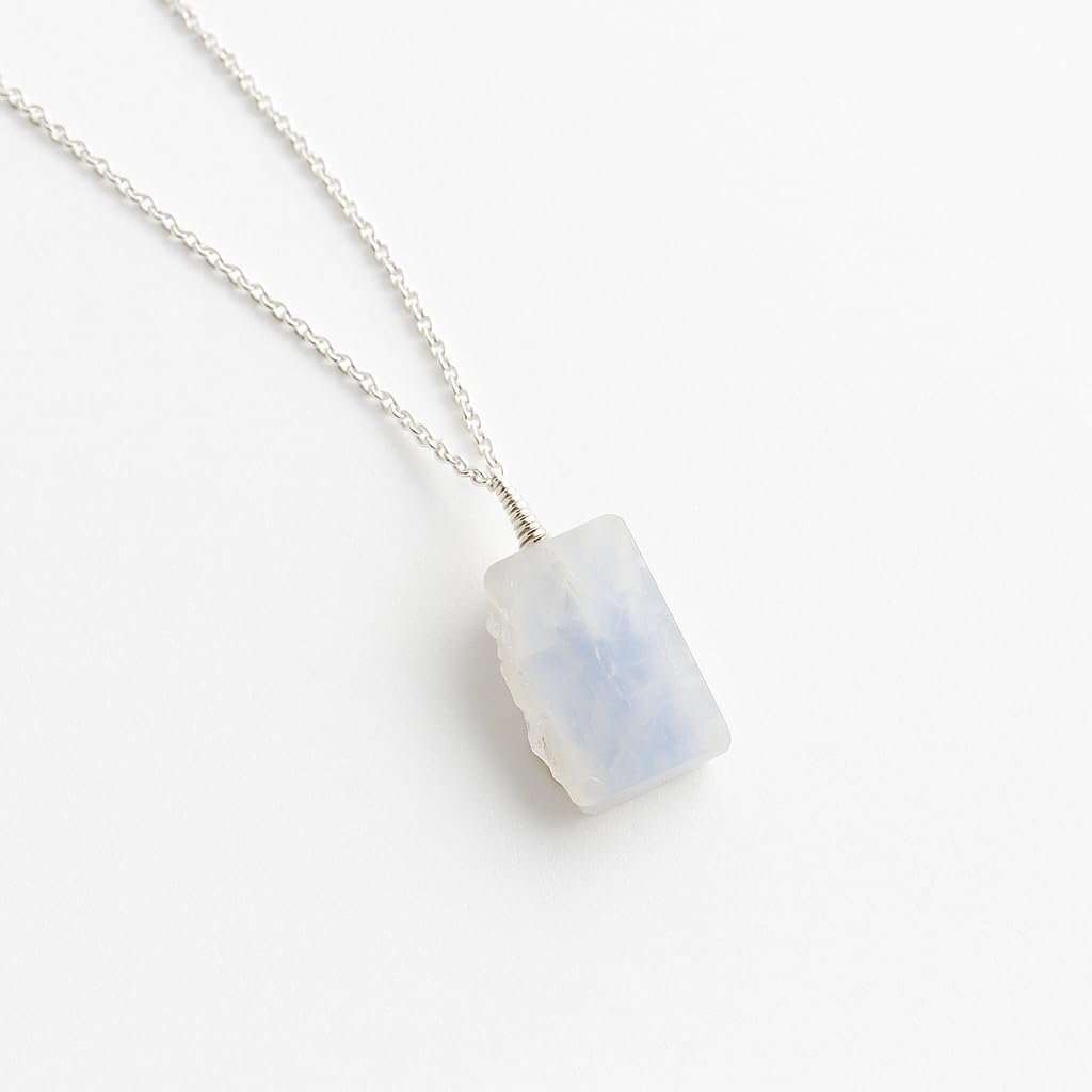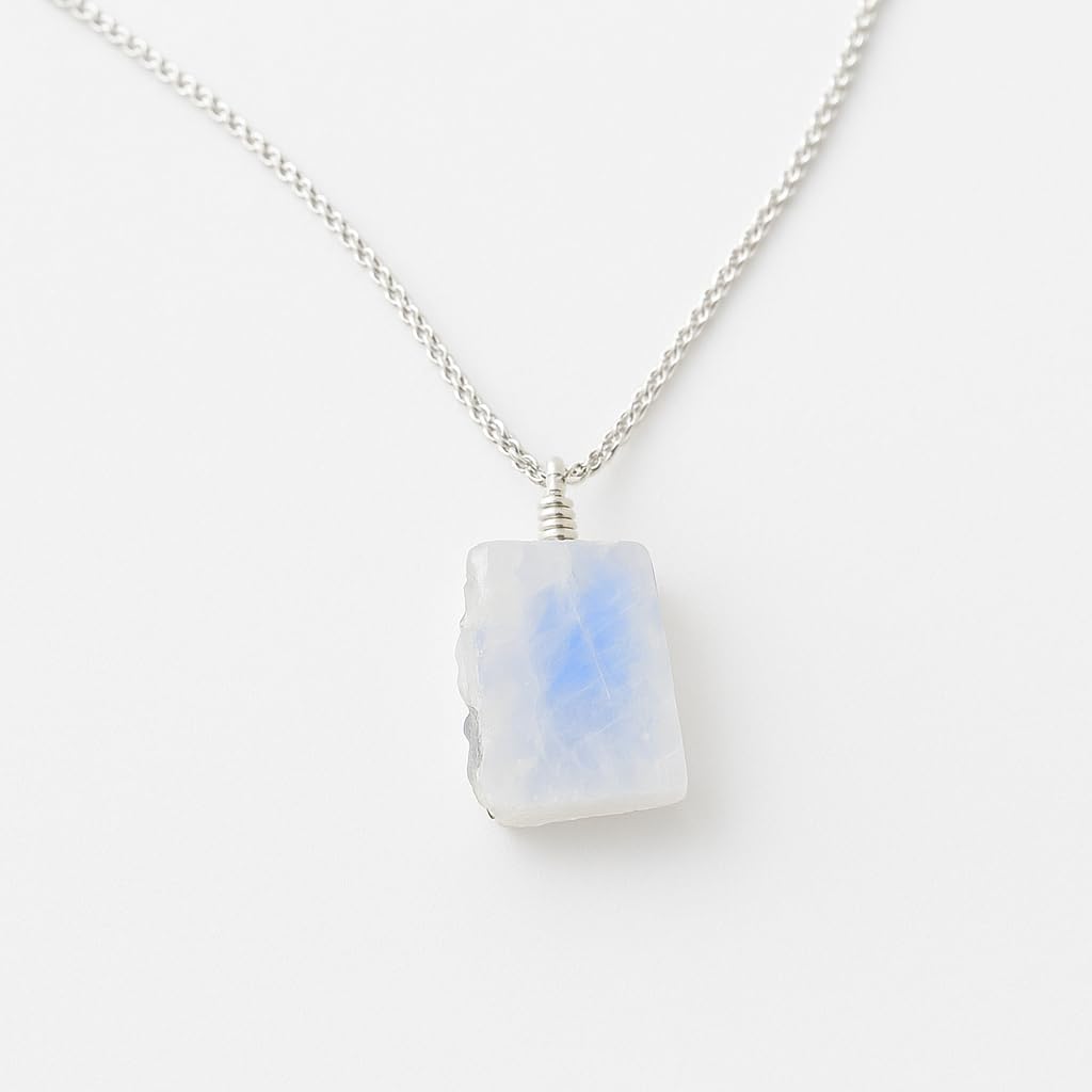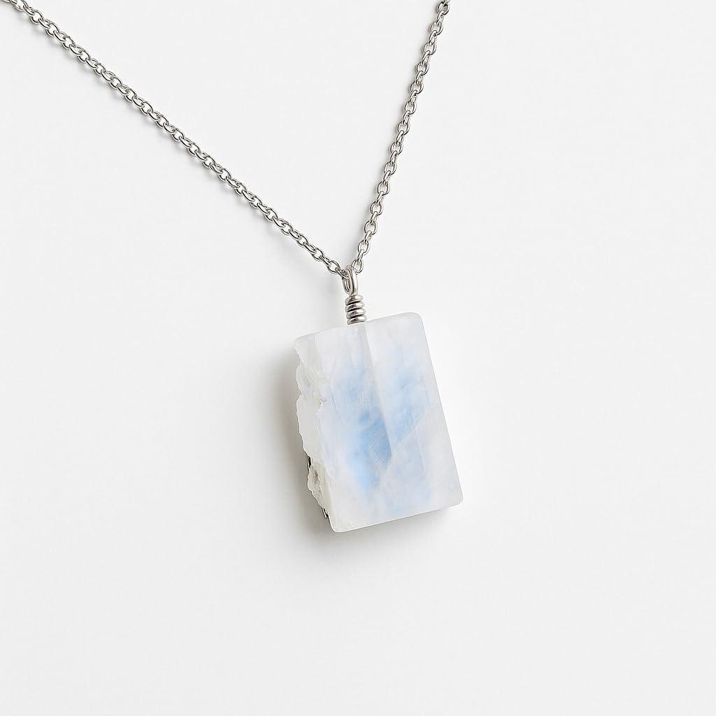 Natural Raw Moonstone Gemstone Ring, German Silver Jewelry, Rough Crystals, Birthstone, Healing Stones, Charming Women Jewelry in 18 inch
