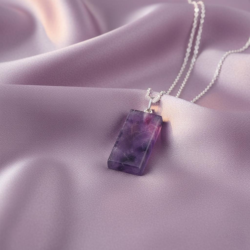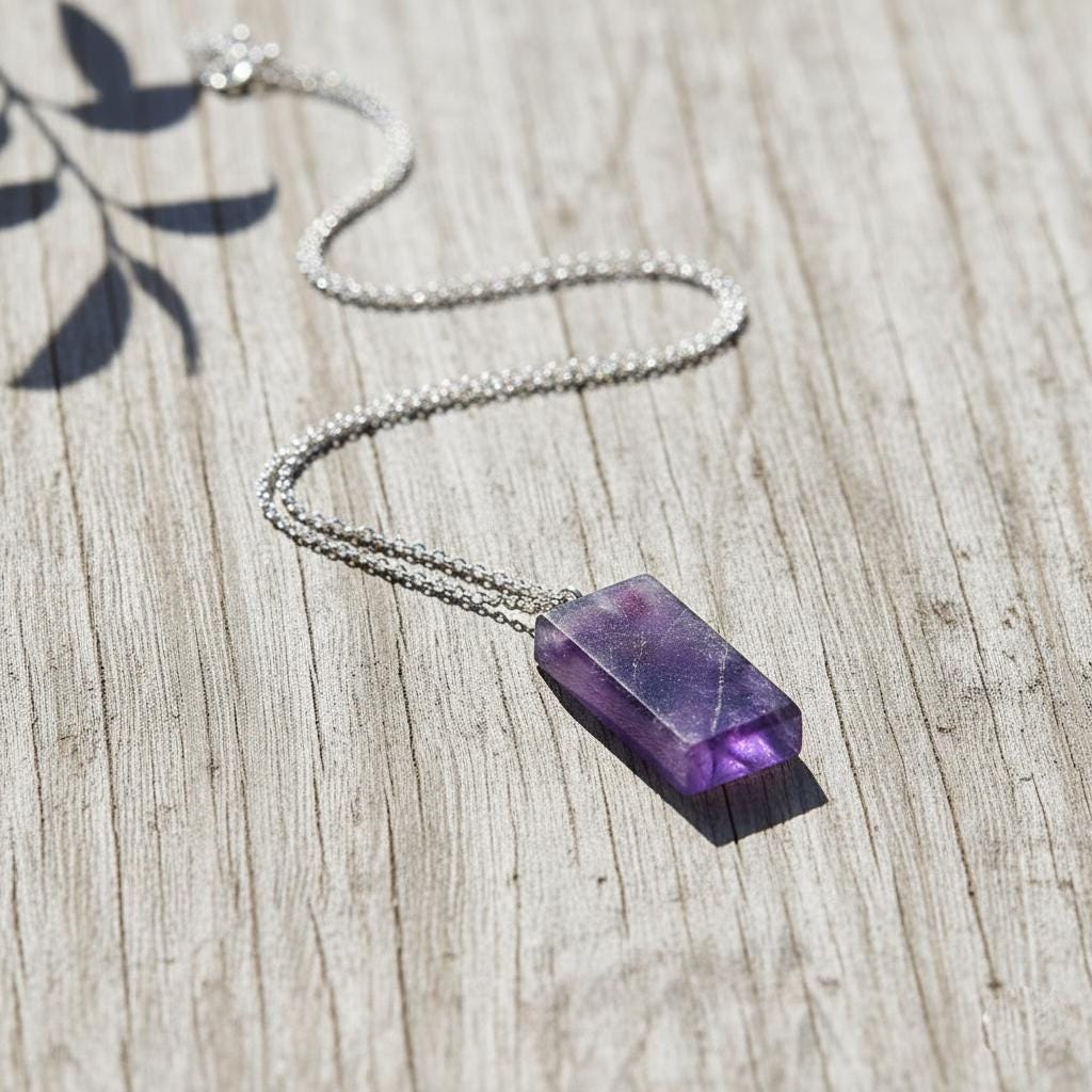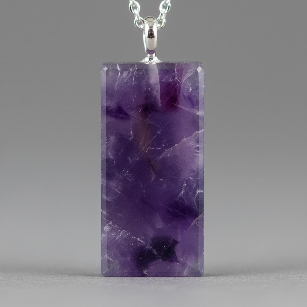 Amethyst is known as a stone of peace, balance, protection, and spiritual clarity, making this pendant both stylish and symbolic. Its clean, modern shape pairs effortlessly with casual outfits or layered jewelry looks.