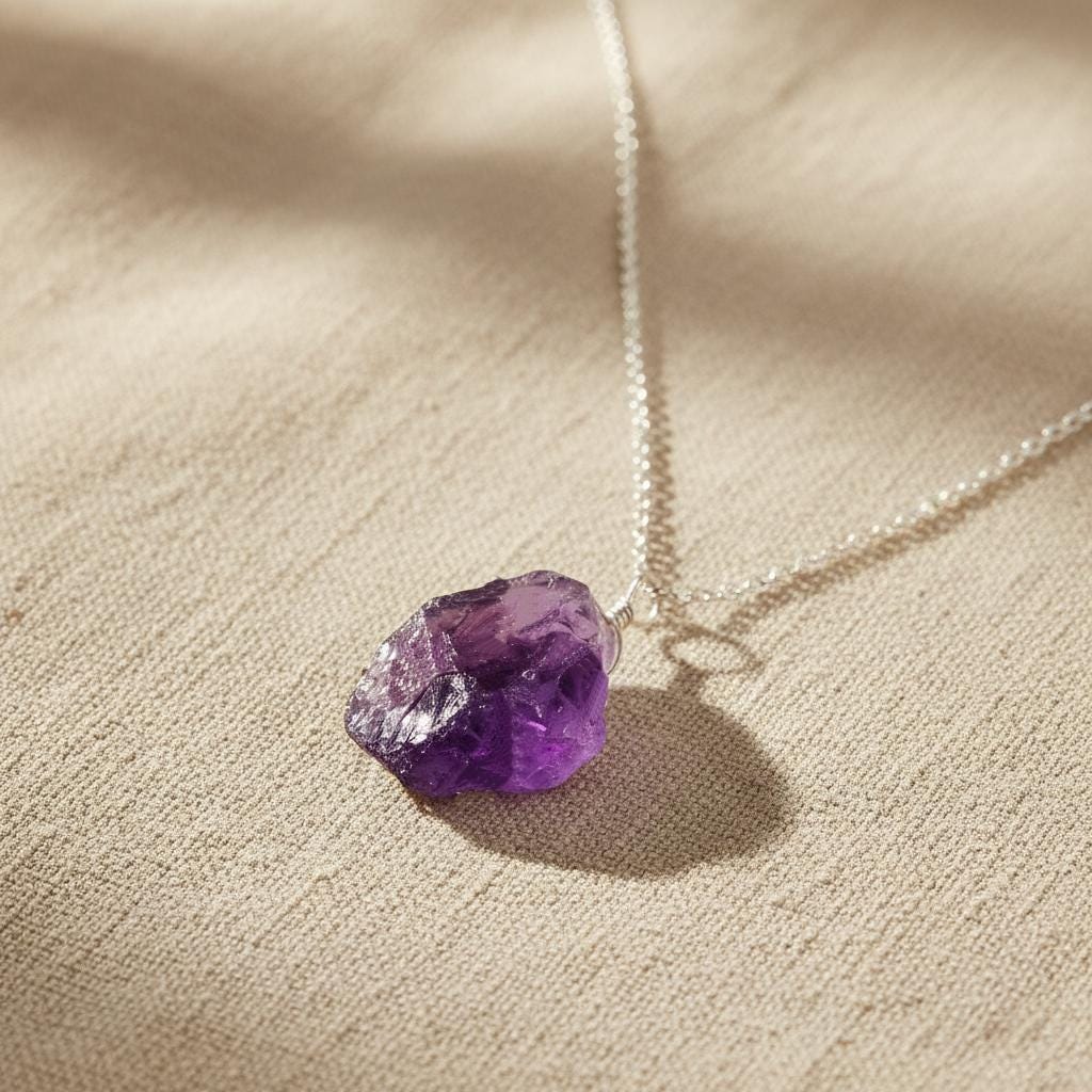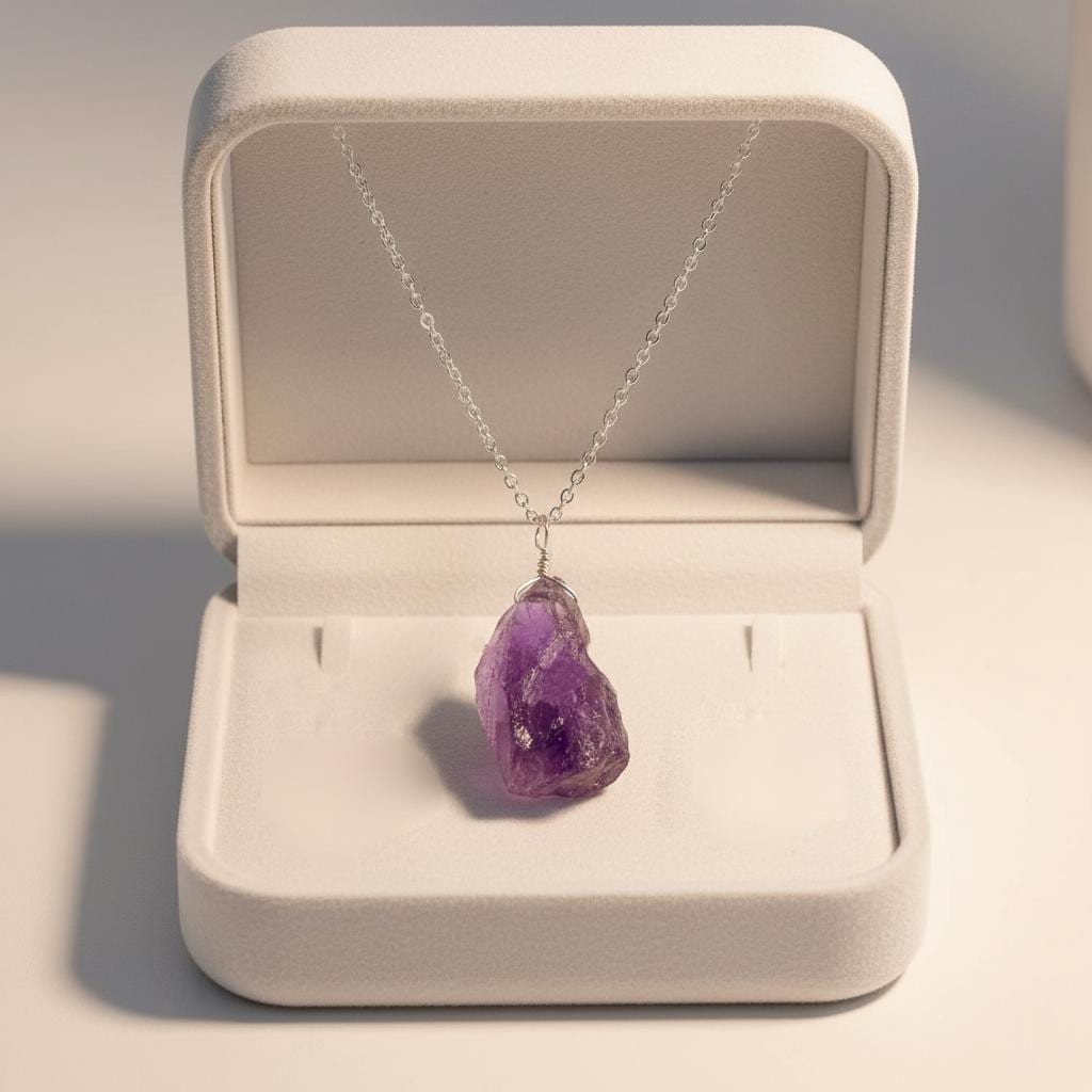 Embrace the natural beauty of crystals with this Raw Amethyst Pendant Necklace. Featuring a genuine, uncut amethyst stone in its raw form, this necklace celebrates nature’s imperfections and powerful energy. Each pendant is completely unique in shape, texture, and color tones.