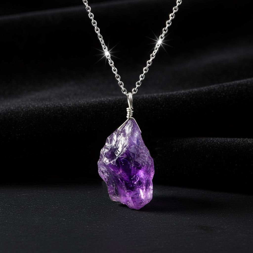 Suspended on a durable German silver chain, this raw crystal necklace is perfect for spiritual wear, meditation, or everyday boho styling. Amethyst is the February birthstone and is known for its calming, protective, and healing properties.