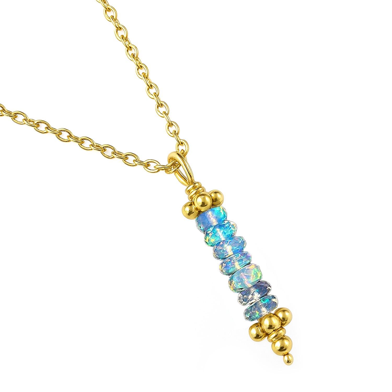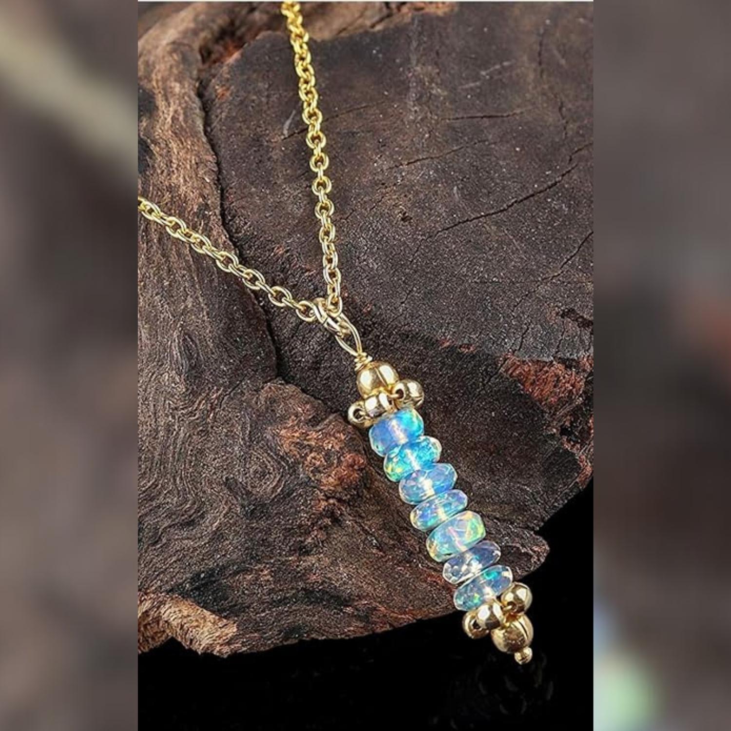 Authentic Gemstones: Features a vertical bar of genuine natural opal beads, known for their stunning "fire" and color-shifting properties.