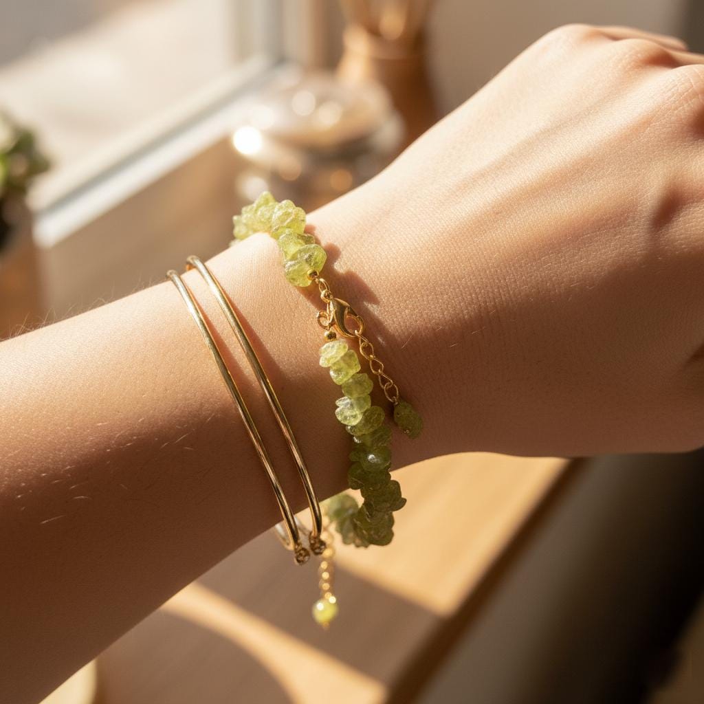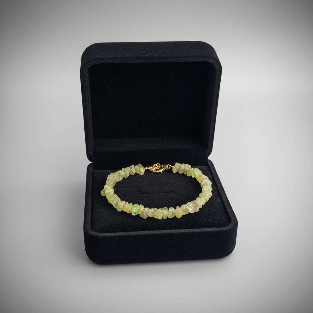 Peridot is known as the stone of positivity, renewal, and abundance, making this bracelet perfect for daily wear or meaningful gifting. Its organic raw chips give every piece a unique, earthy charm.