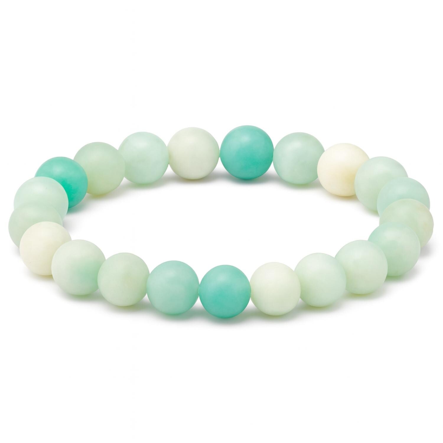 100% Genuine Amazonite: Features high-quality, matte-finished beads in a spectrum of soft sea-foam greens and teals.