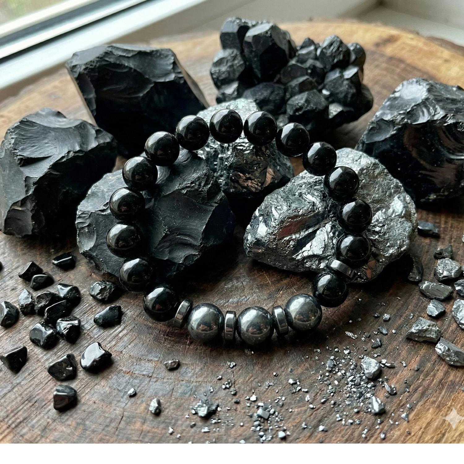 Find your center and shield your peace with this handcrafted Hematite & Black Onyx Grounding Bracelet. Expertly designed to promote emotional and physical well-being, this bracelet combines the anchoring power of Hematite with the protective strength of Black Onyx.
