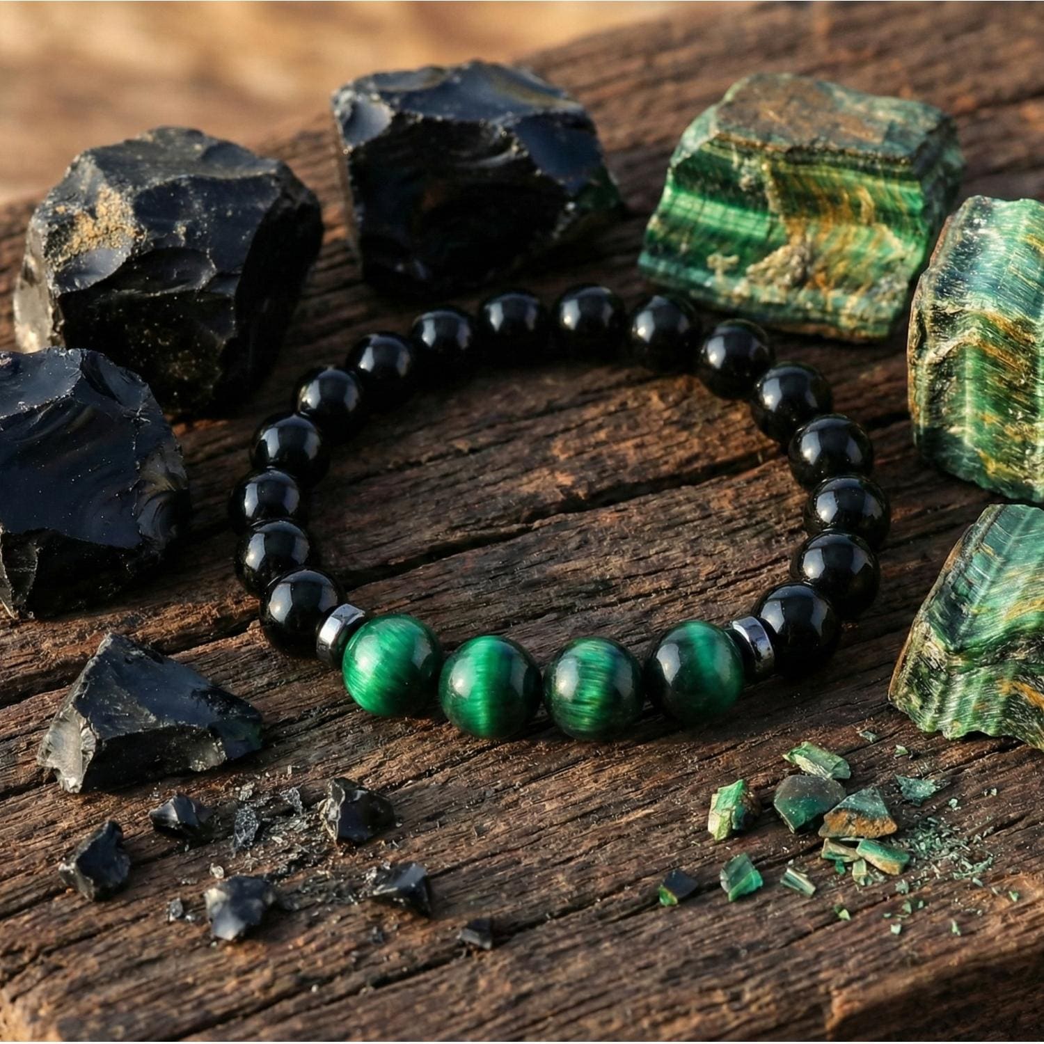 Genuine High-Quality Stones: Features 100% natural Green Tiger Eye with its signature chatoyancy and deep, polished Black Onyx beads.