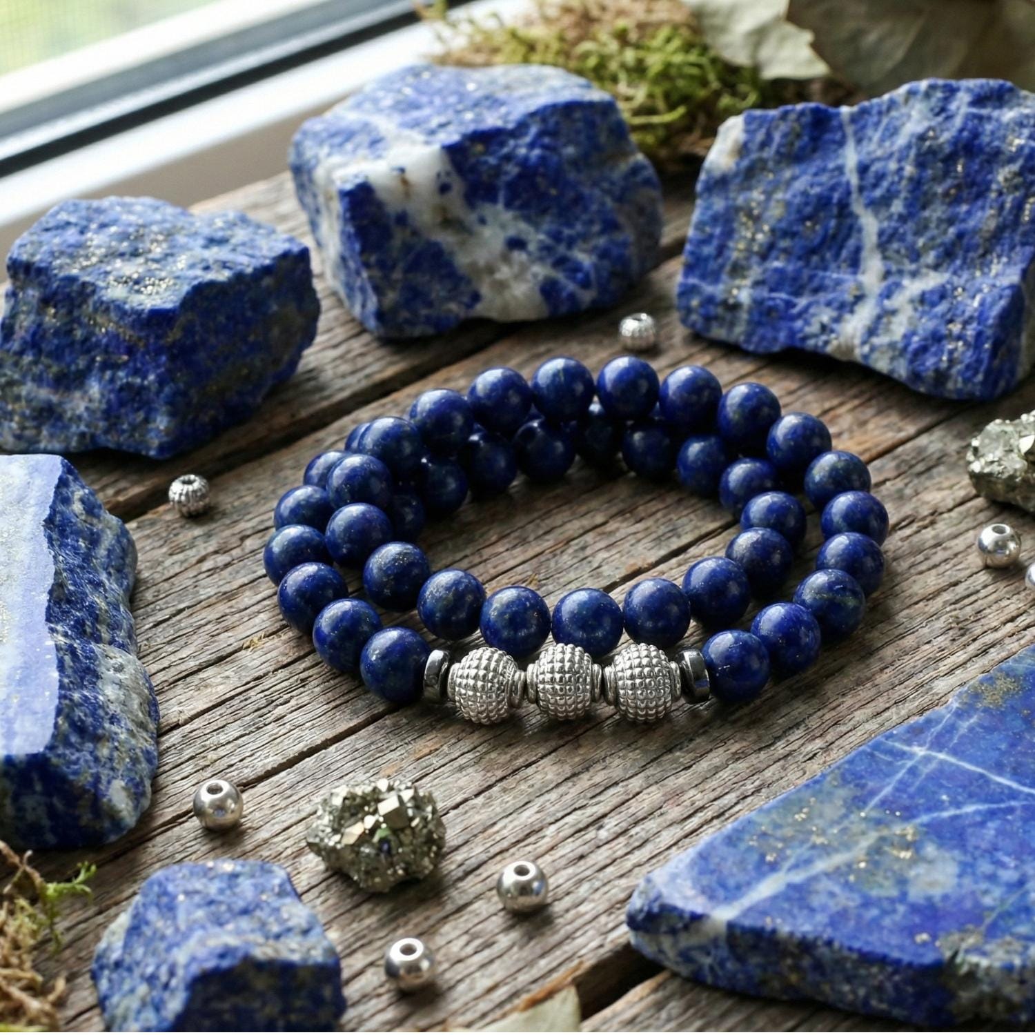 100% Genuine Lapis Lazuli: Features high-quality, deep blue beads with natural flecks of golden pyrite for a truly celestial appearance.