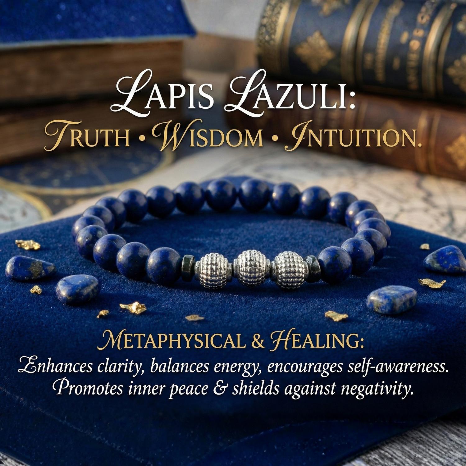 Unlock your inner wisdom and enhance your clarity with this handcrafted Natural Lapis Lazuli Bracelet. Known for centuries as the stone of royalty and truth, Lapis Lazuli is a powerful tool for those seeking to deepen their intuition, balance their energy, and shield themselves from negativity.