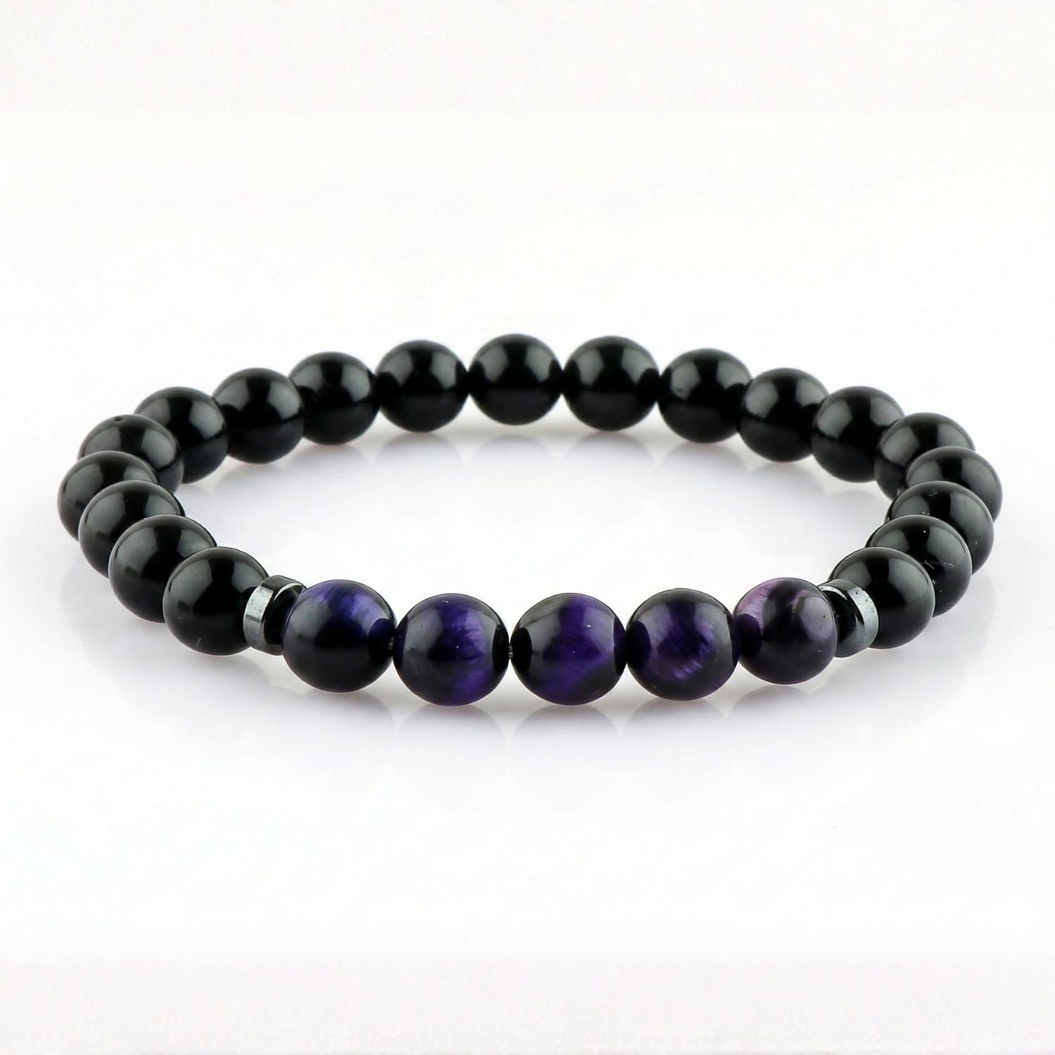 Genuine High-Quality Stones: Features 100% natural, polished 8mm beads with the mesmerizing chatoyancy of purple tiger eye and the deep gloss of black onyx.