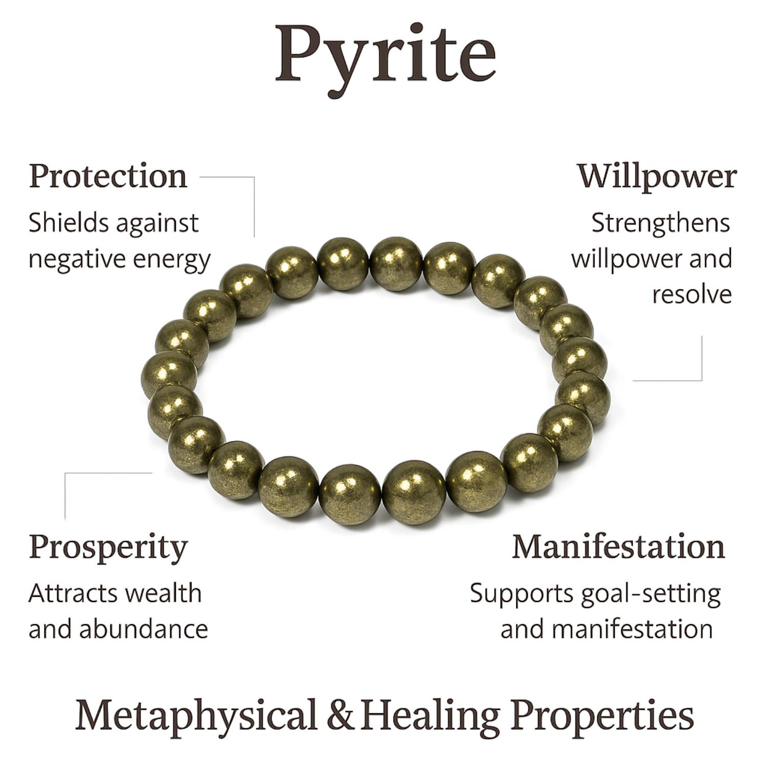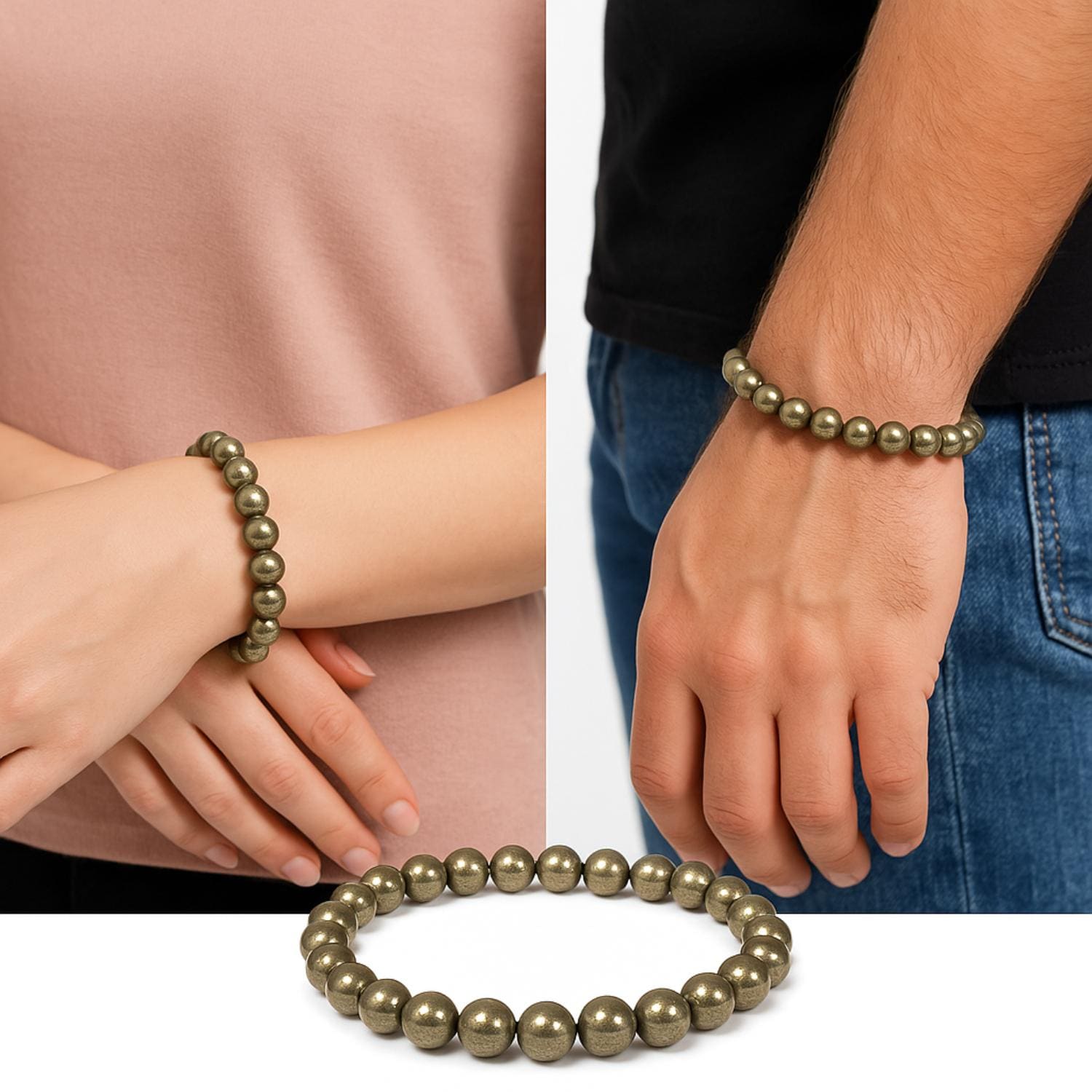 100% Genuine Pyrite: Features high-quality, polished 8mm beads with a stunning metallic golden luster.