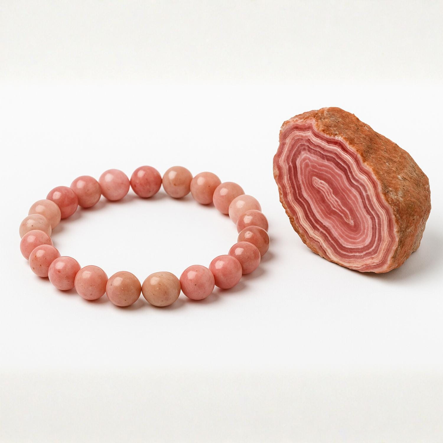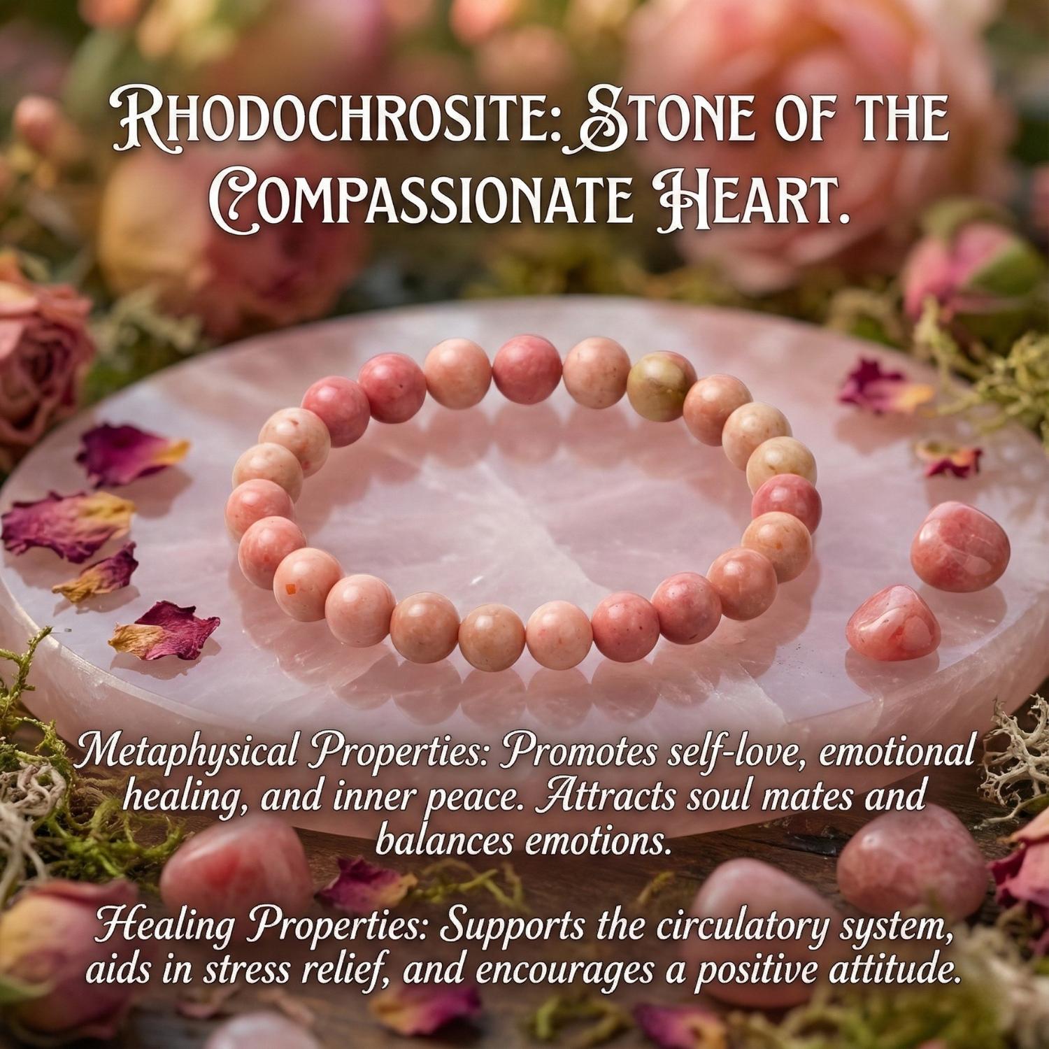 Open your heart to love and inner peace with this handcrafted Natural Rhodochrosite Bracelet. Known as the "Stone of the Compassionate Heart," Rhodochrosite is a beautiful pink gemstone that serves as a powerful ally for emotional healing, self-love, and attracting meaningful connections.