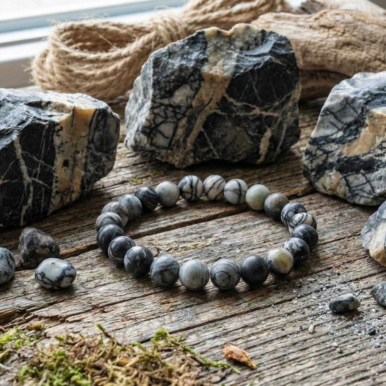 100% Genuine Web Jasper: Each bead features unique grey and black "web" patterns, ensuring your bracelet is a one-of-a-kind piece of nature.