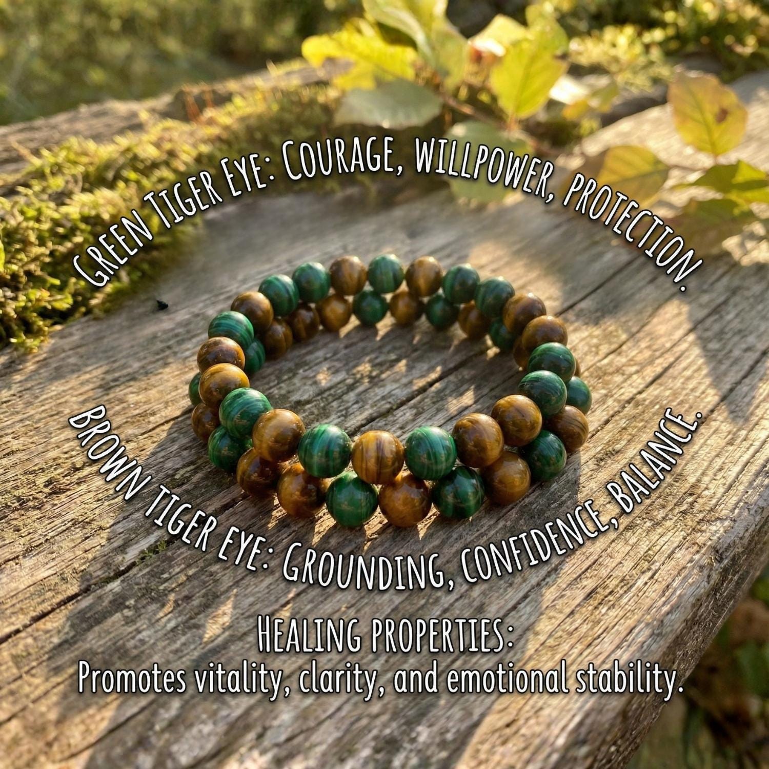 Master your personal power and stay perfectly grounded with this handcrafted Green & Brown Tiger's Eye Success Bracelet. This unique dual-stone design combines the legendary "Stone of Courage" in two vibrant hues to provide a complete spectrum of protection, focus, and emotional stability.