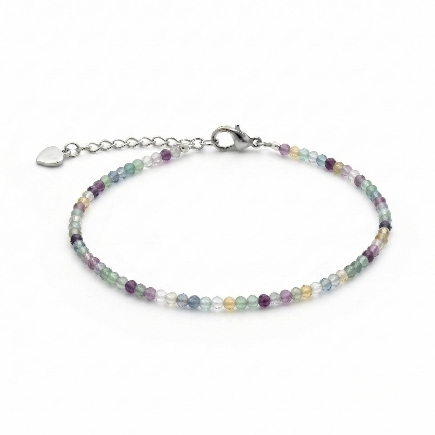 Bring clarity to your mind and harmony to your spirit with this handcrafted Dainty Multi-Fluorite Faceted Anklet. Featuring tiny, sparkling 3mm beads in a beautiful spectrum of greens, purples, and clears, this minimalist design is ideal for those who seek the "Stone of Discernment" in a delicate style.