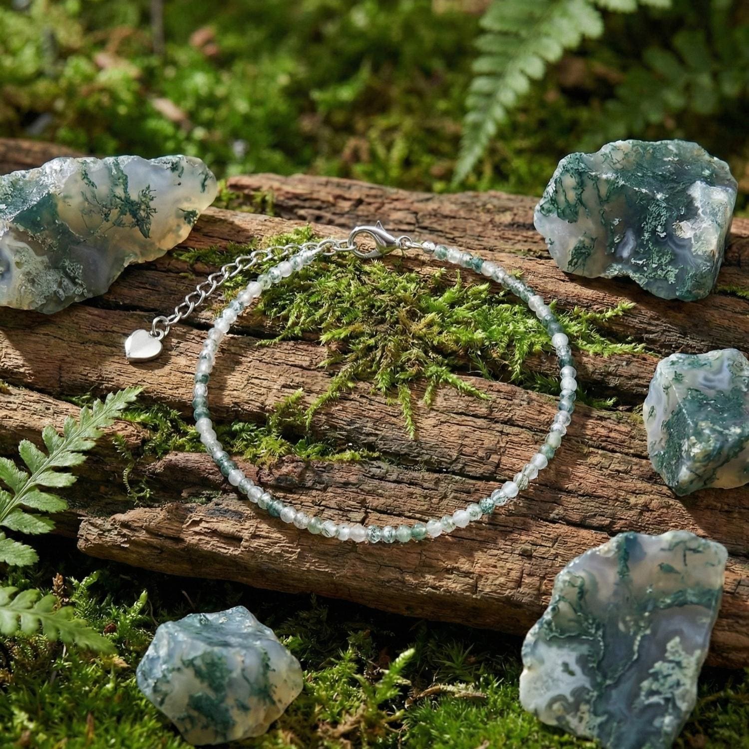 Invite the refreshing energy of the forest with this handcrafted Dainty Moss Agate Faceted Anklet. Featuring tiny, sparkling 3mm beads, this minimalist design is perfect for those who seek the "Stone of New Beginnings" in a refined, everyday style.