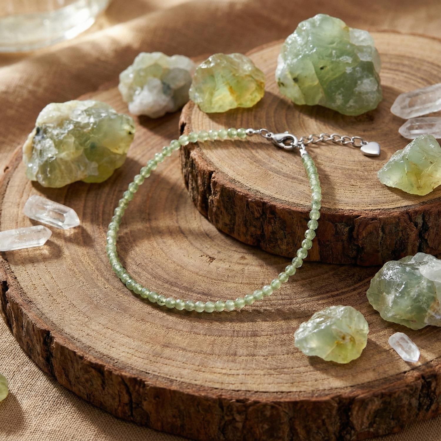 Natural Gemstones: Crafted with high-quality, genuine 3mm faceted Prehnite beads that display a beautiful, light-catching glow.