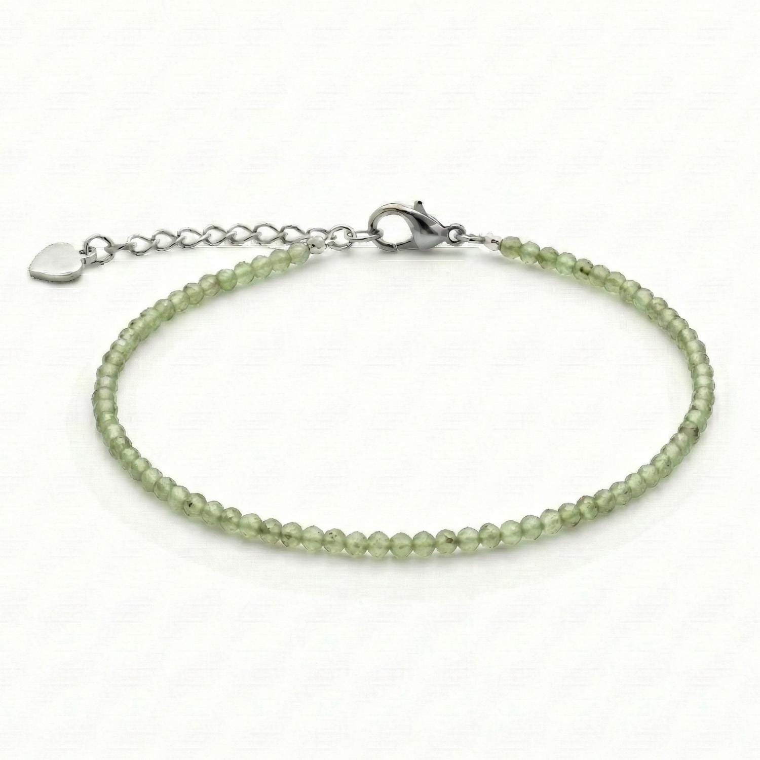 Heal your heart and quiet your mind with this handcrafted Dainty Prehnite Faceted Anklet. Featuring tiny, sparkling 3mm beads in a soft, translucent green, this minimalist design is perfect for those who seek the "Stone of Magic" in a refined, everyday style.
