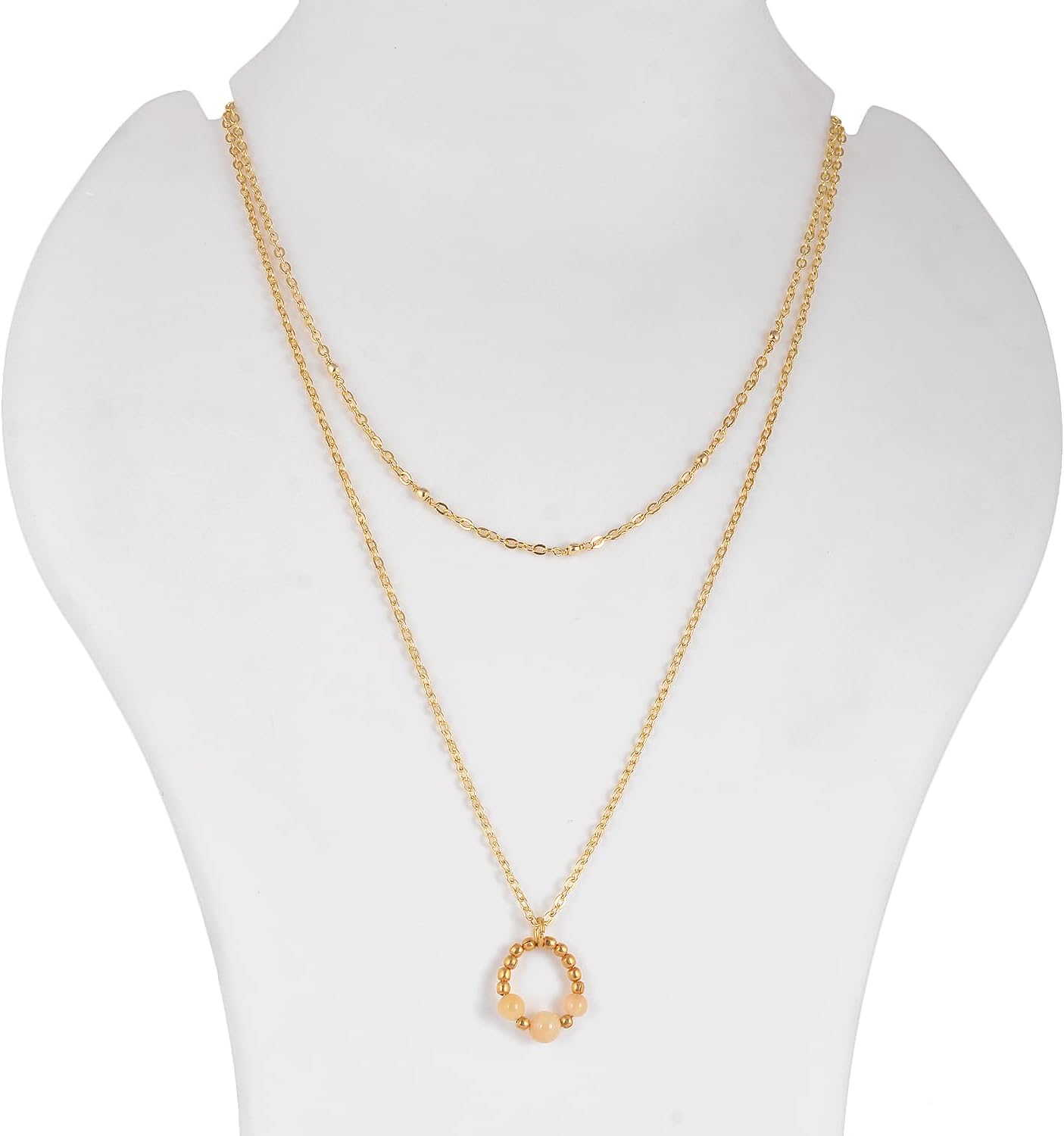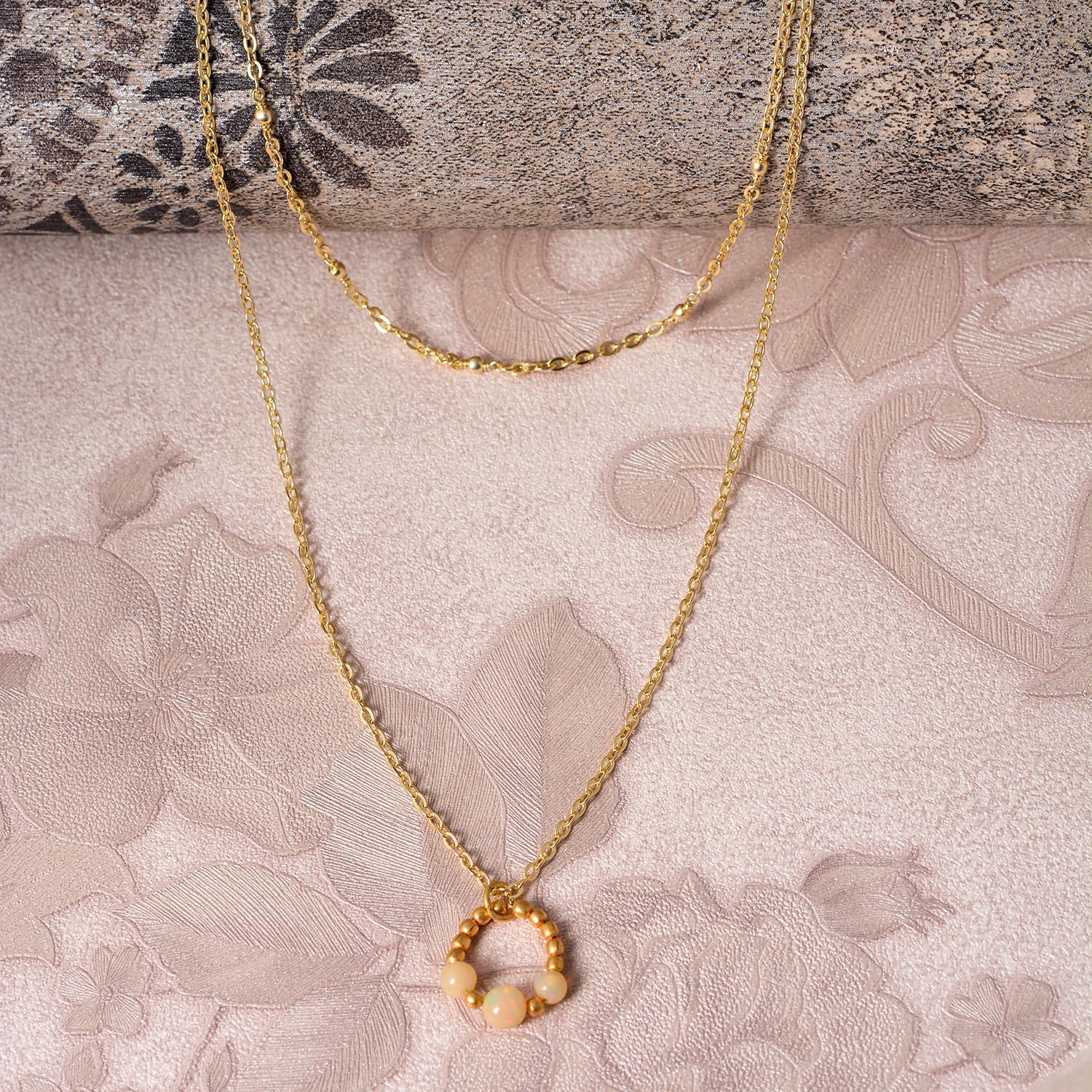 Natural Ethiopian Opal Beaded Gemstone Double Layer Pendant Necklace, 14k Gold Filled German Silver Jewelry, Beads Crystals, Birthstone, Healing Stones, Charming Women Jewelry in 18 inch