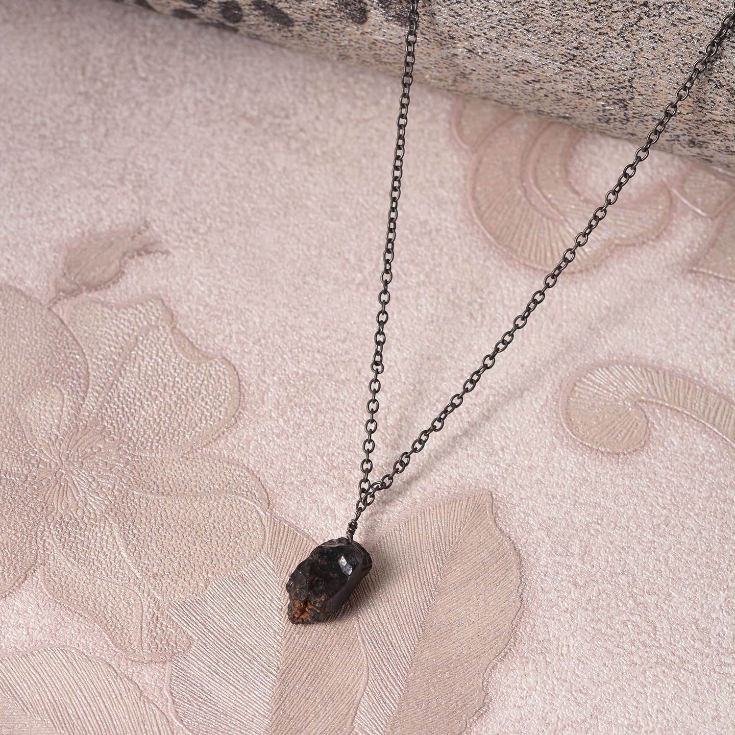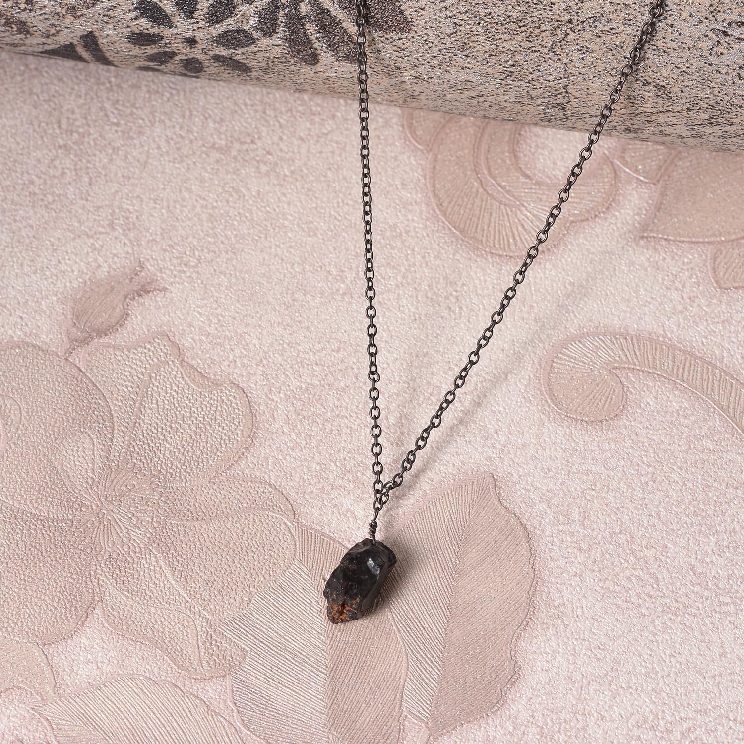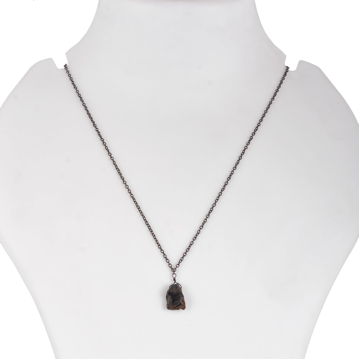 Natural Raw Garnet Gemstone Pendant Necklace, Black Rhodium Plated German Silver Jewelry, Rough Crystals, Birthstone, Healing Stones, Charming Women Jewelry in 18 inch