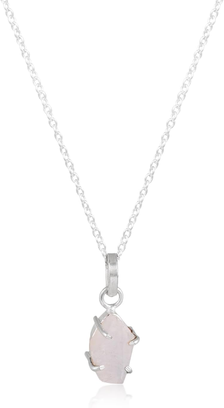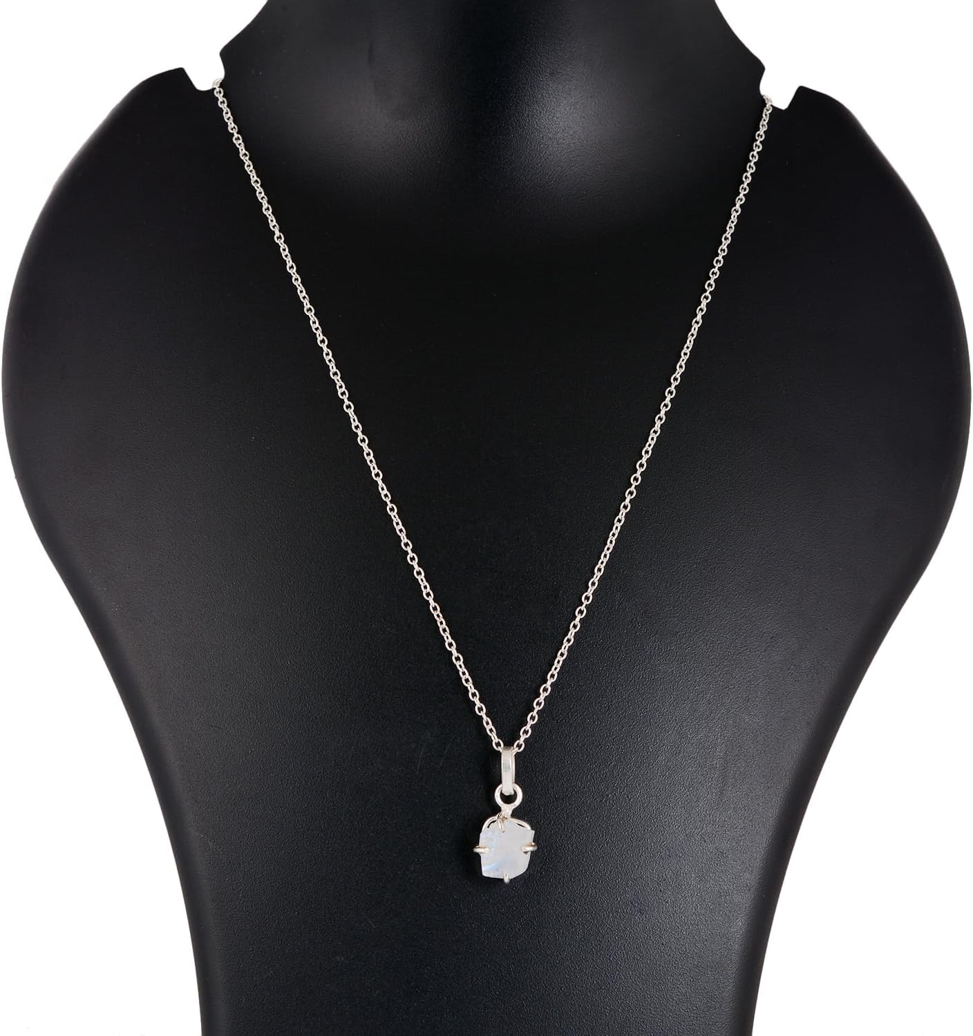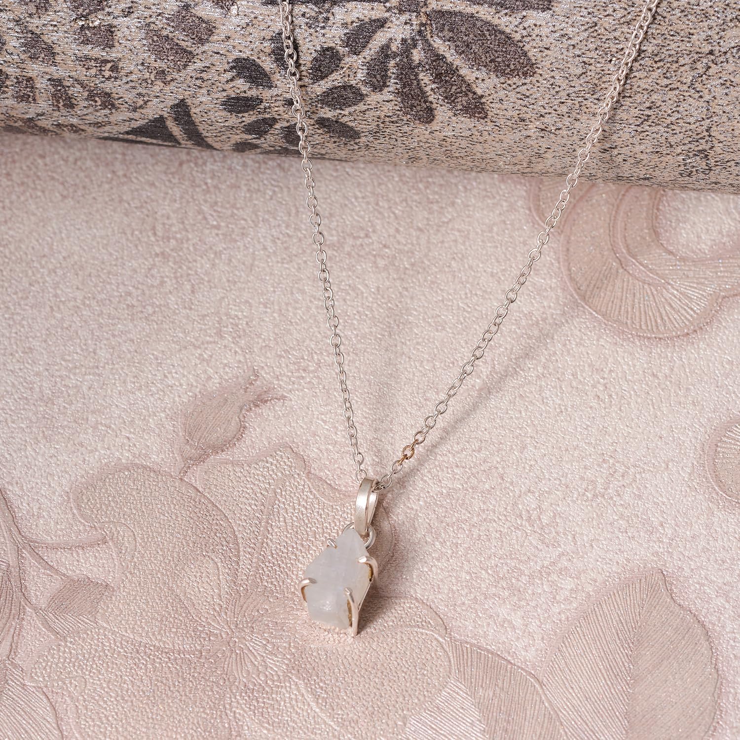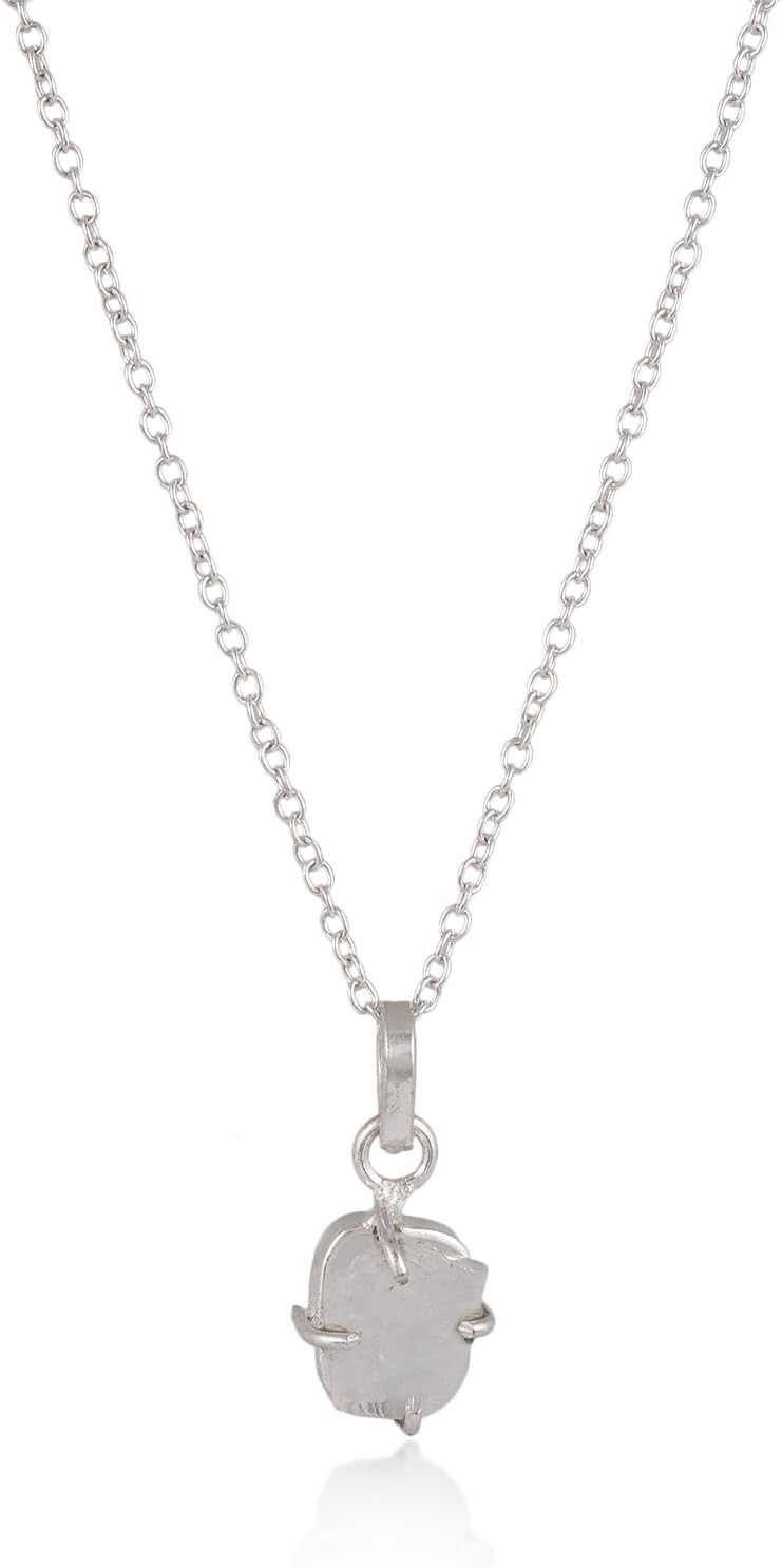 Natural Raw Moonstone Prong Pendant Necklace, German Silver Jewelry, Gemstone Rough Crystals, June Birthstone, Healing Stones, Charming Women Jewelry in 18 inch