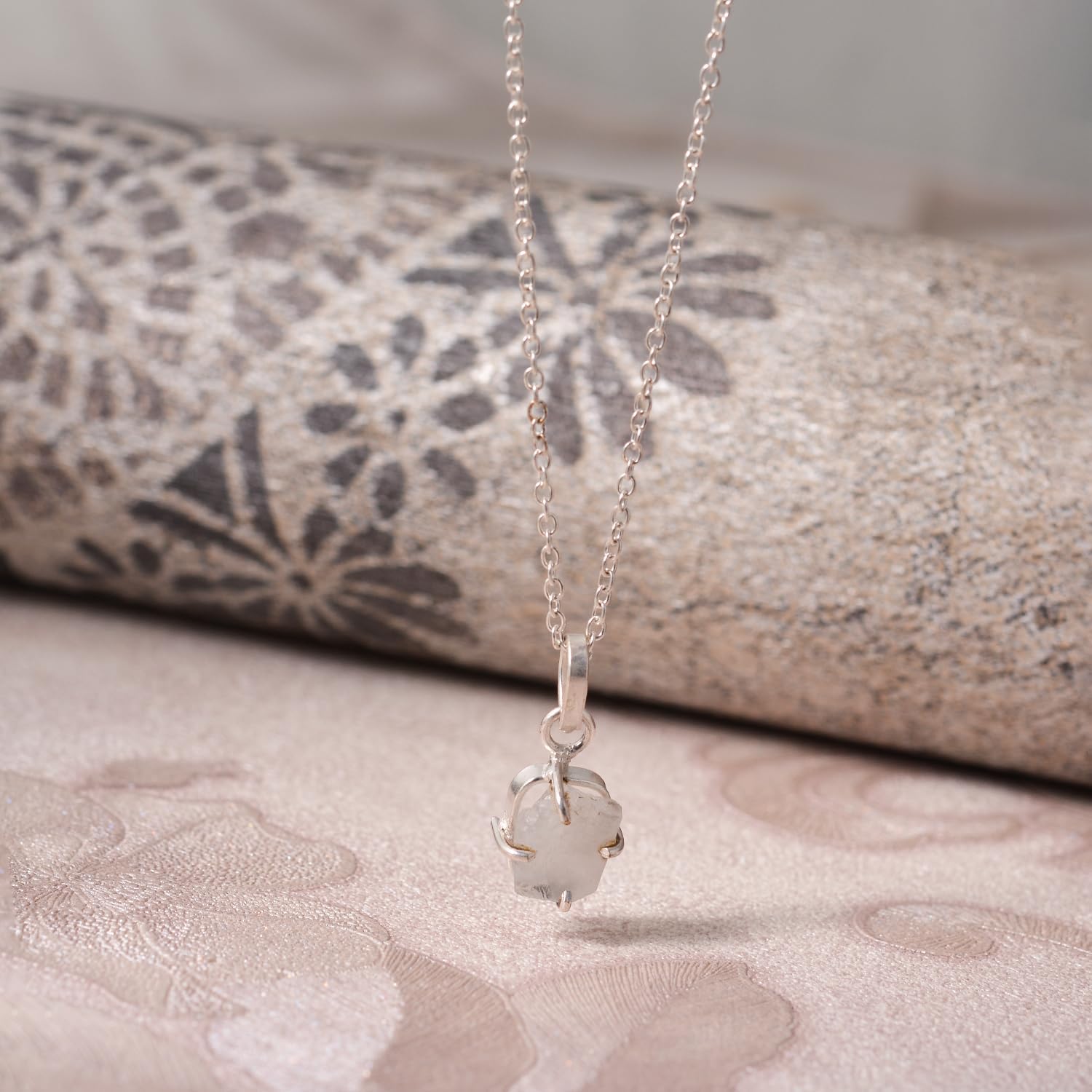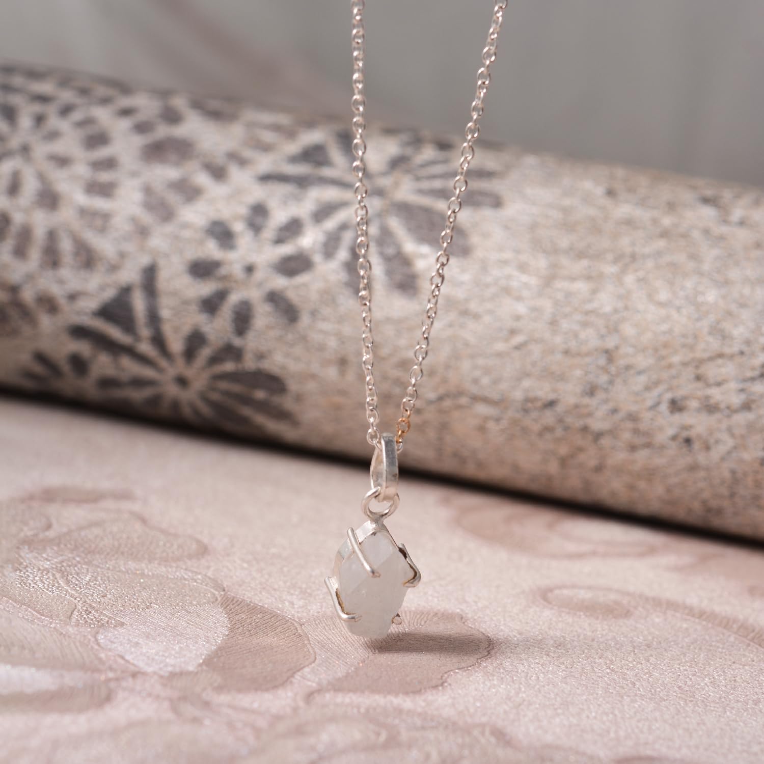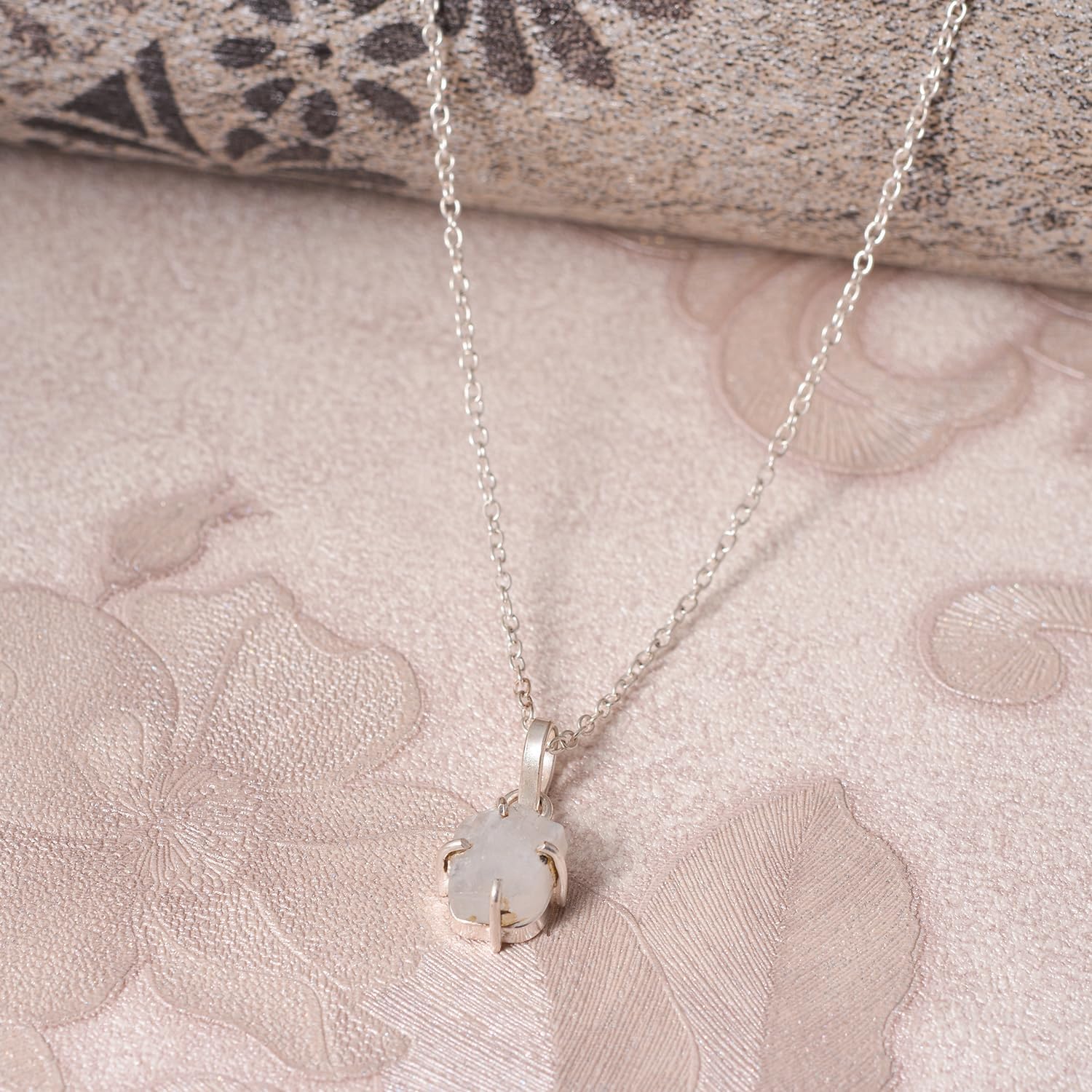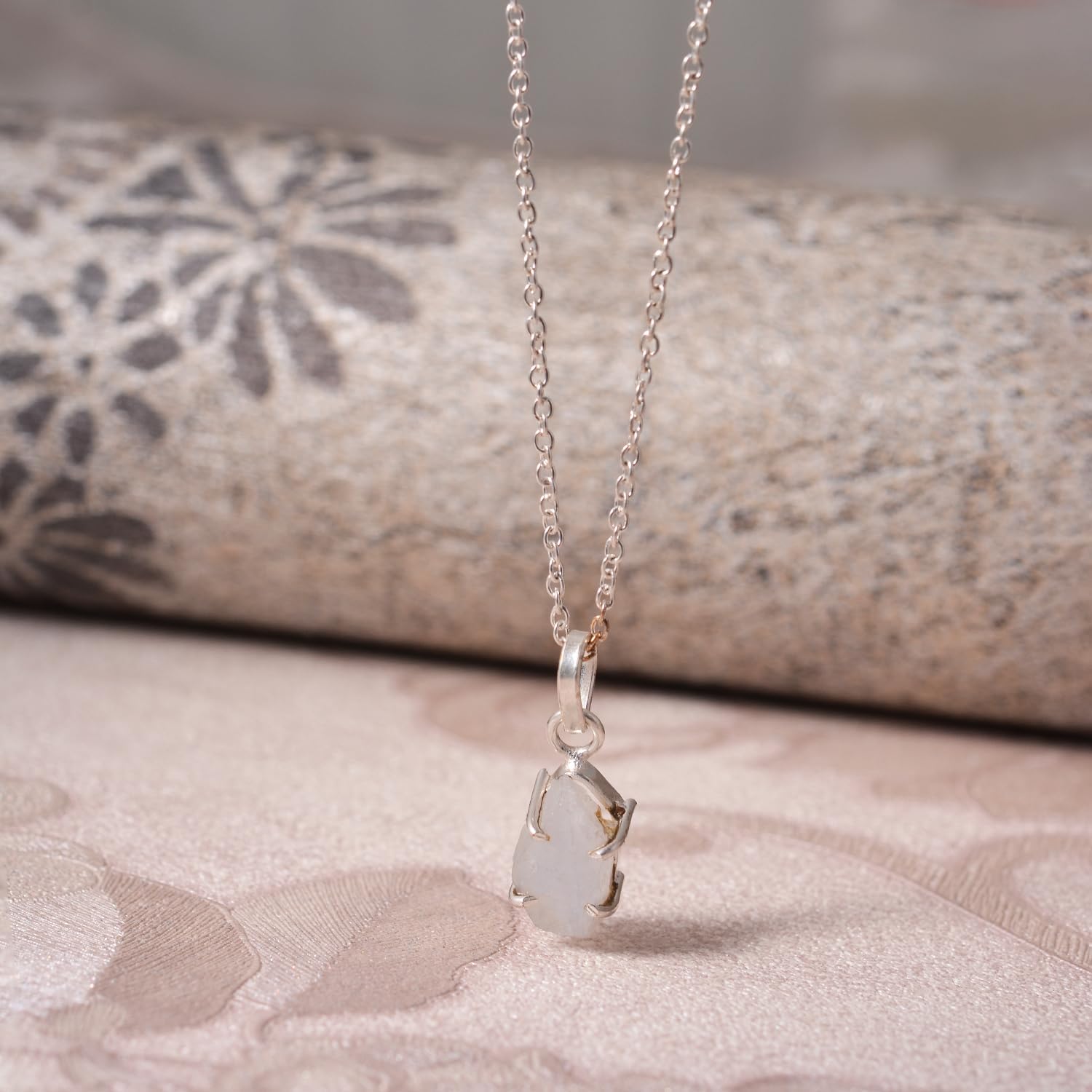 Natural Raw Moonstone Prong Pendant Necklace, German Silver Jewelry, Gemstone Rough Crystals, June Birthstone, Healing Stones, Charming Women Jewelry in 18 inch